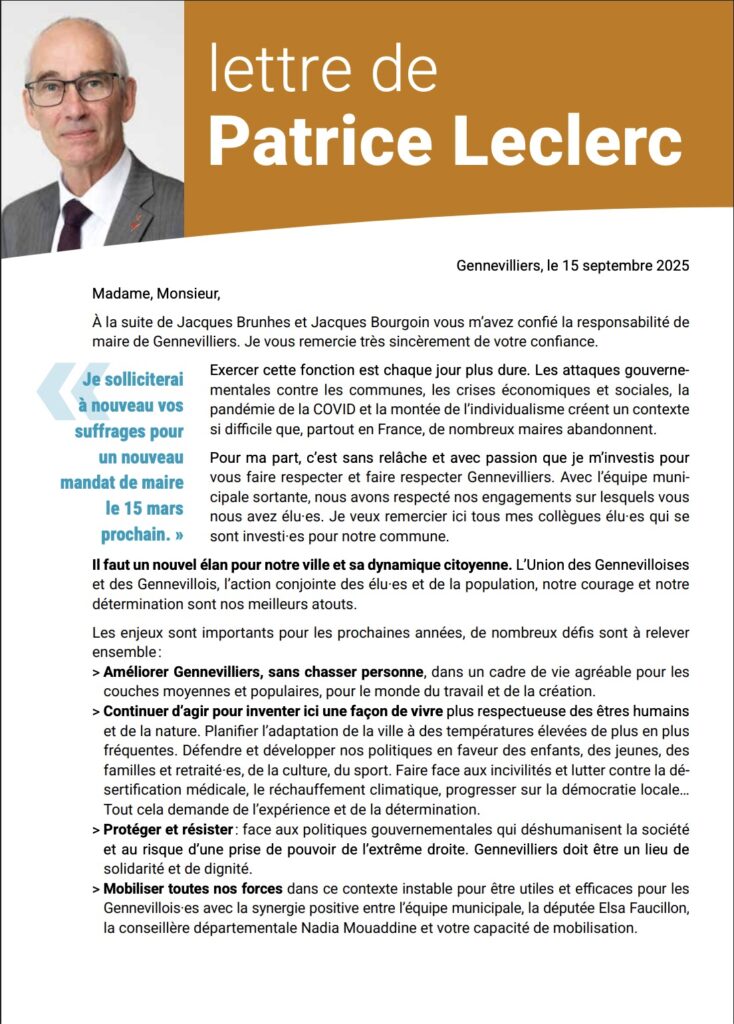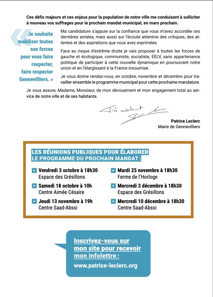 Ces défis majeurs et ces enjeux pour la population de notre ville me conduisent à solliciter à nouveau vos suffrages pour le prochain mandat municipal, en mars prochain.